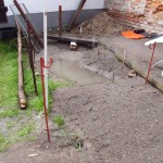 – Beginn der Hofgestaltung durch Ausgleich Geländehöhe und Schaffung erster planer Flächen